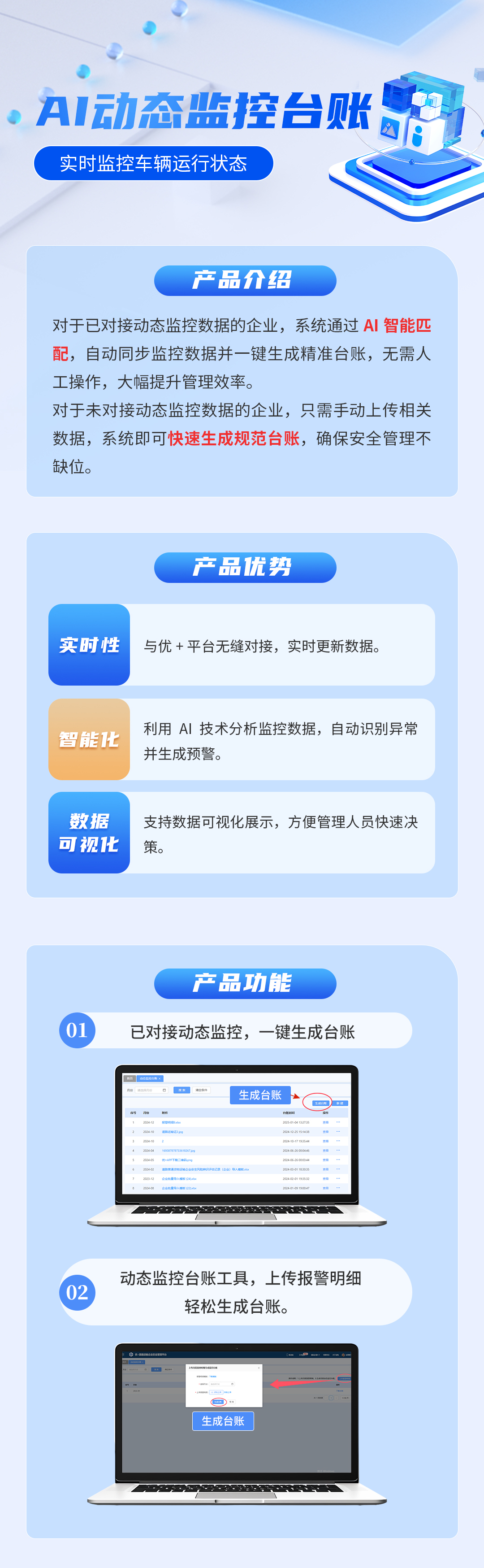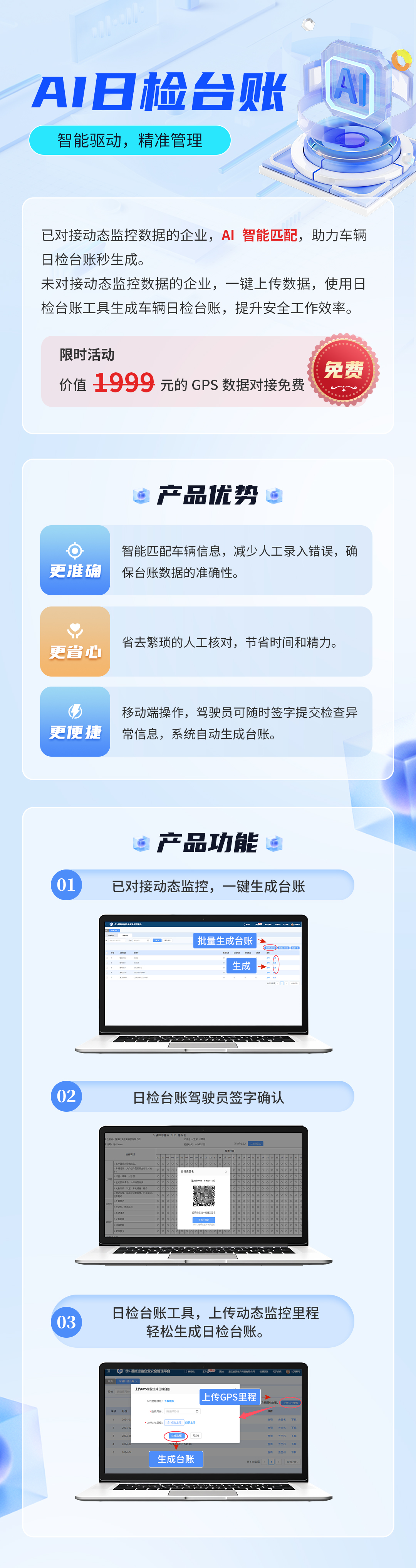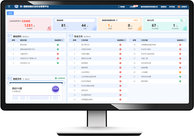 以降本增效的核心原则,为道路运输企业提供安全管理工具、台账功能,方便其高效进行日常安全管理,提升安全管理水平。PC端、移动端多端协同,轻量化操作,形成企业安全生产管理闭环,实现信息一体化安全管理。